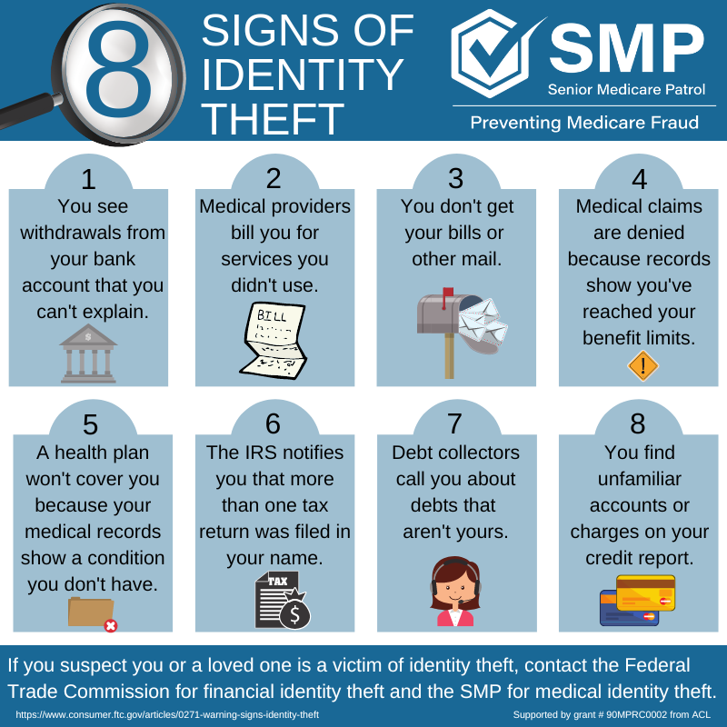 Medical identity theft can also affect beneficiaries’ medical and health insurance records. Every time a scammer uses a beneficiary’s identity to receive or bill for care/supplies, a record is created with incorrect medical information about them.